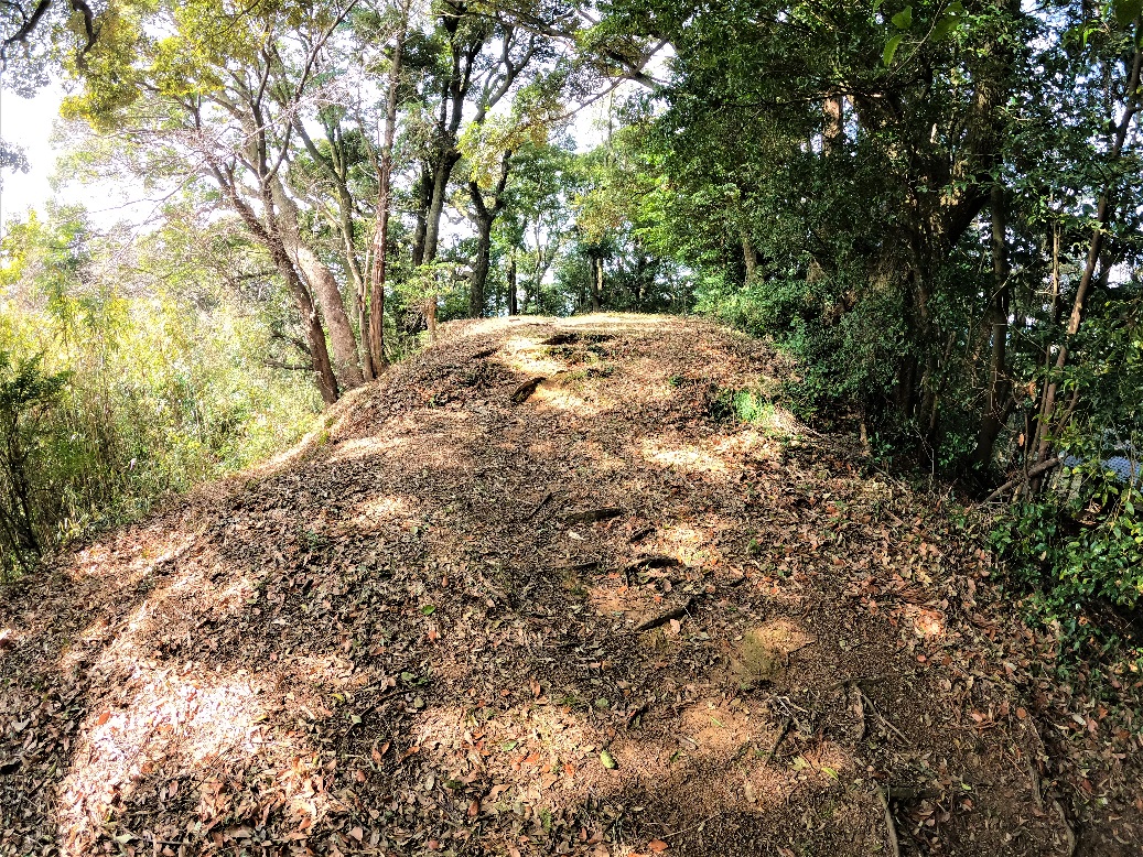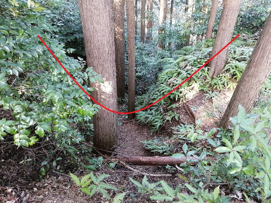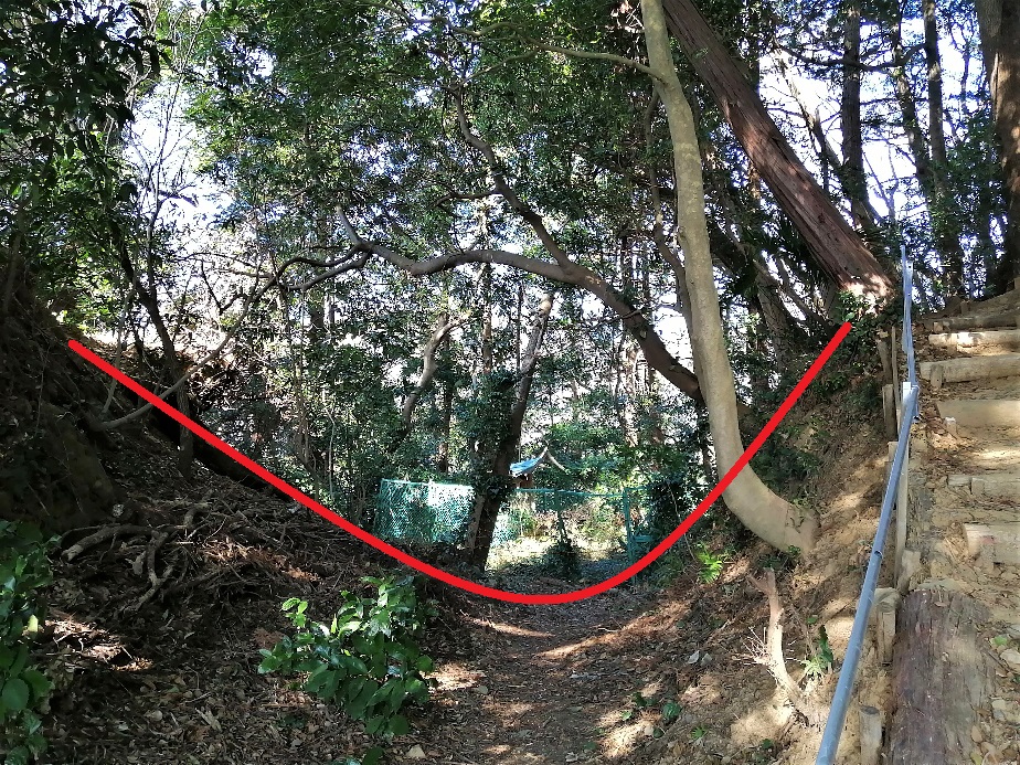 かなりの急傾斜。人工的に削った切岸でしょうか。