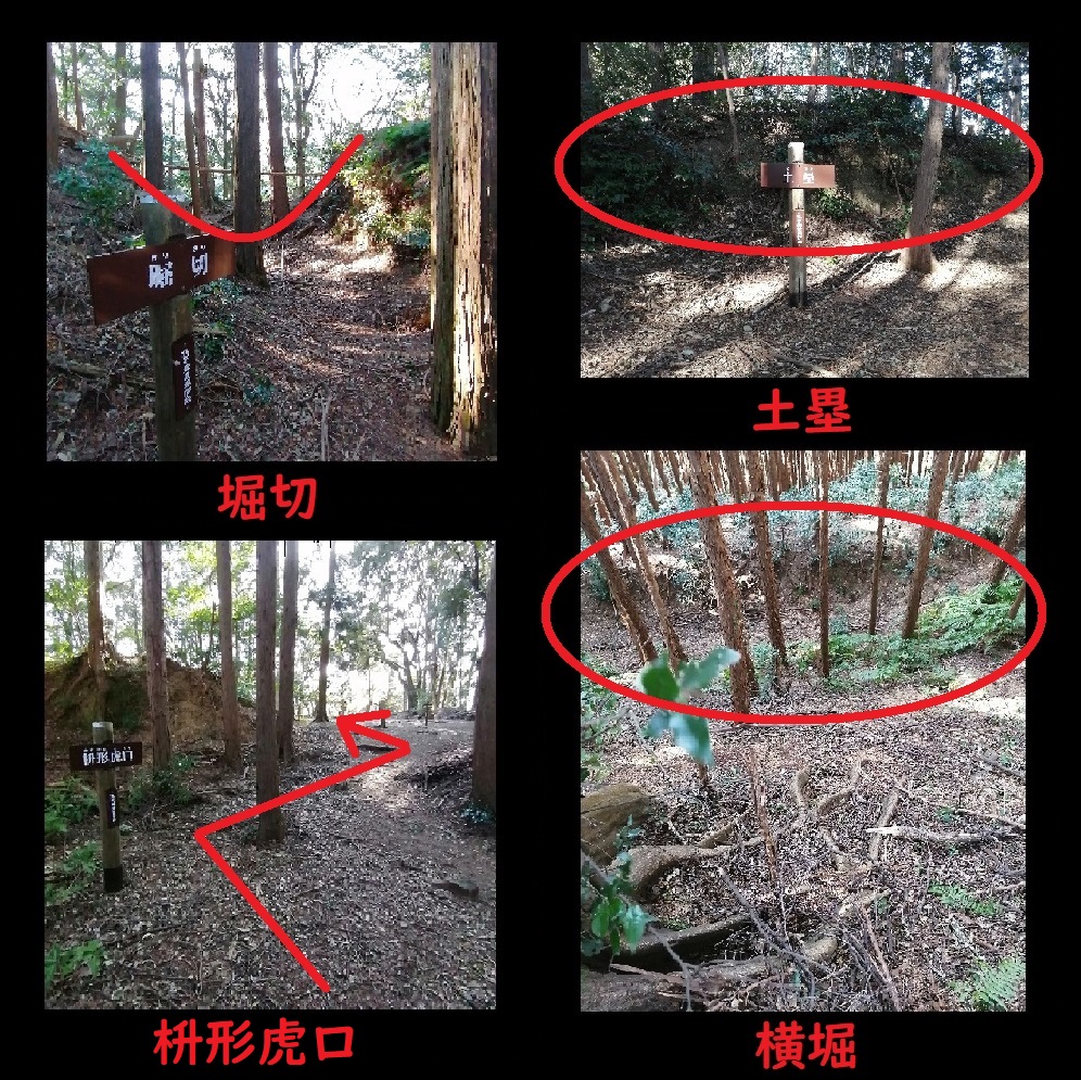 【堀切】曲輪間や尾根筋を掘削して、移動を困難にします。
