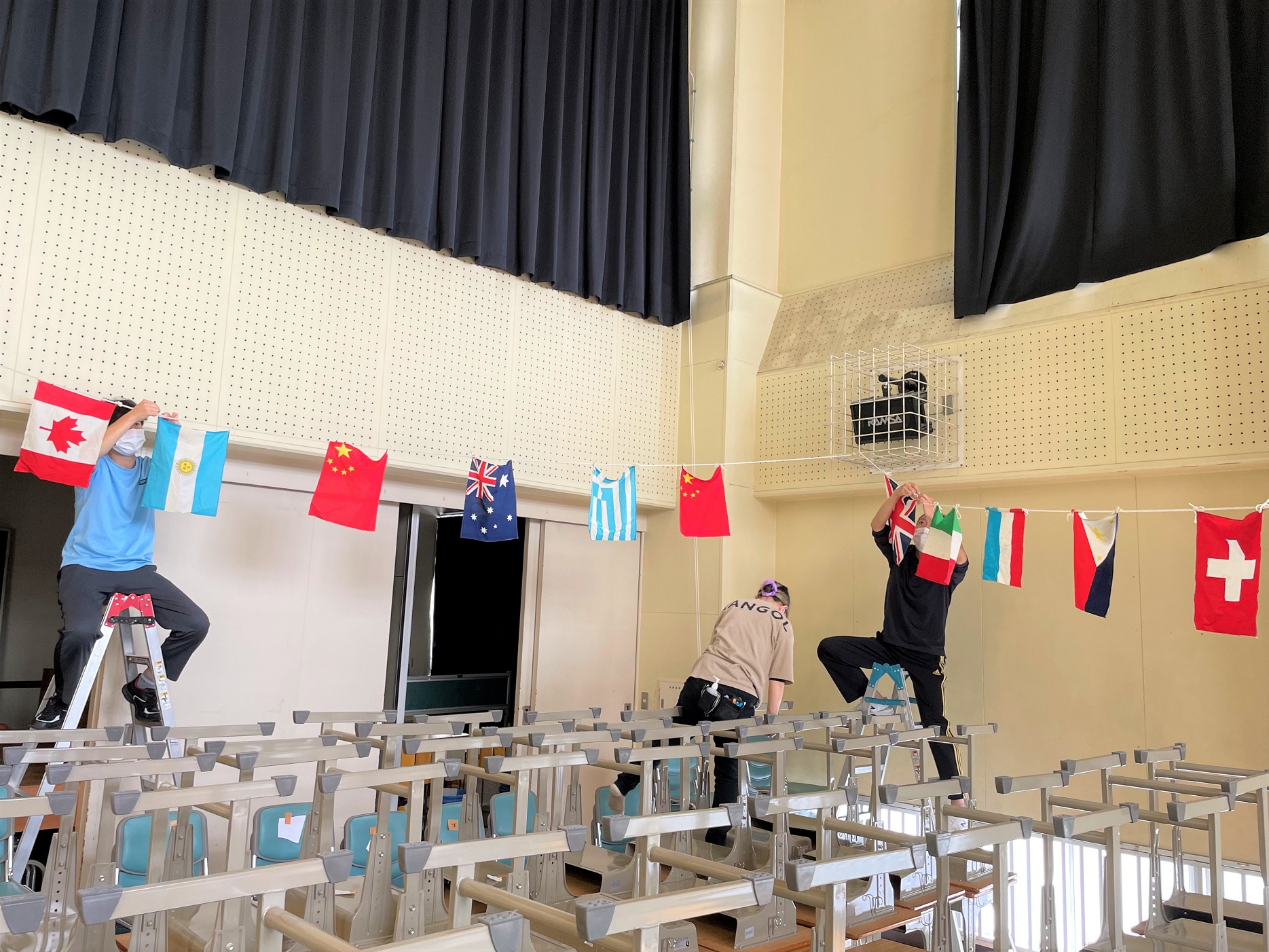 済生会看護専門学校の体育館をお借りし、準備に取りかかります。