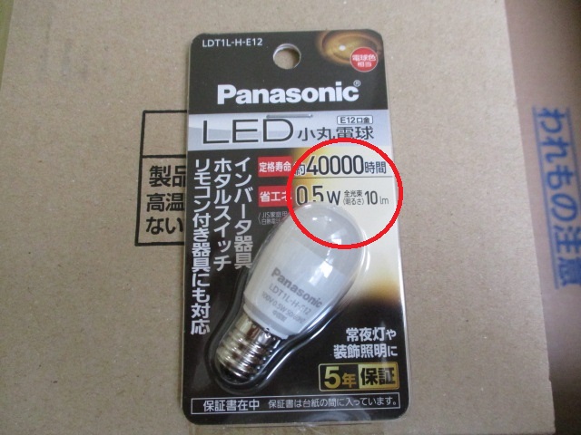 電球は、常夜灯用のLED電球(10ℓm)です。