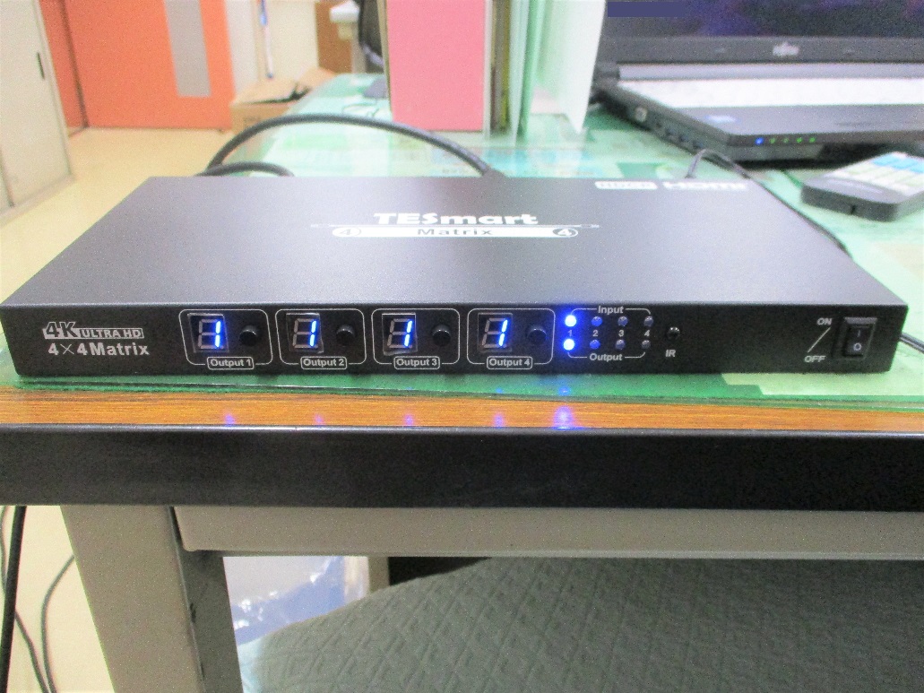 前面の表示盤には、「Output 1」~「Output 4」があり、