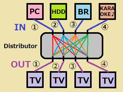 同じ映像を見られるというモノです。→分配器
