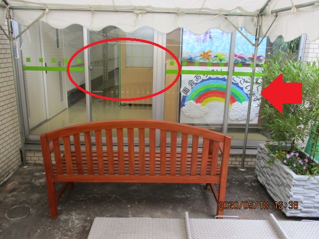 その後、介護長がガラスの追突防止シールを剥がし、「いのちの虹」を飾り付けしてくれました。